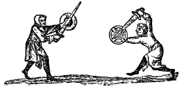 Рис. 6. Меч и баклер. Из рукописи в Королевской библиотеке. XIII век