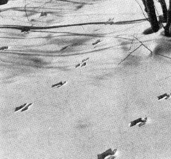 Тут пробежал заяц-беляк (слева), а рядом проскакала куница.