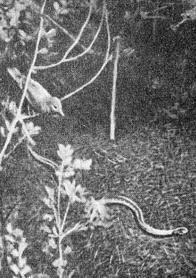 Весничка, как привязанная, перепархивала за змеёй: куда та, туда и она. Вертелась с криком над самой её головой.