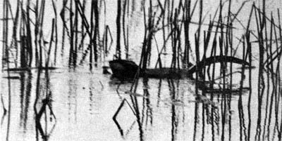 А сам надел резиновый костюм, лёг на воду, ухватился за пучок тростника, чтоб волны не сносили, и стал ждать. Кто-то пожалует в гости?