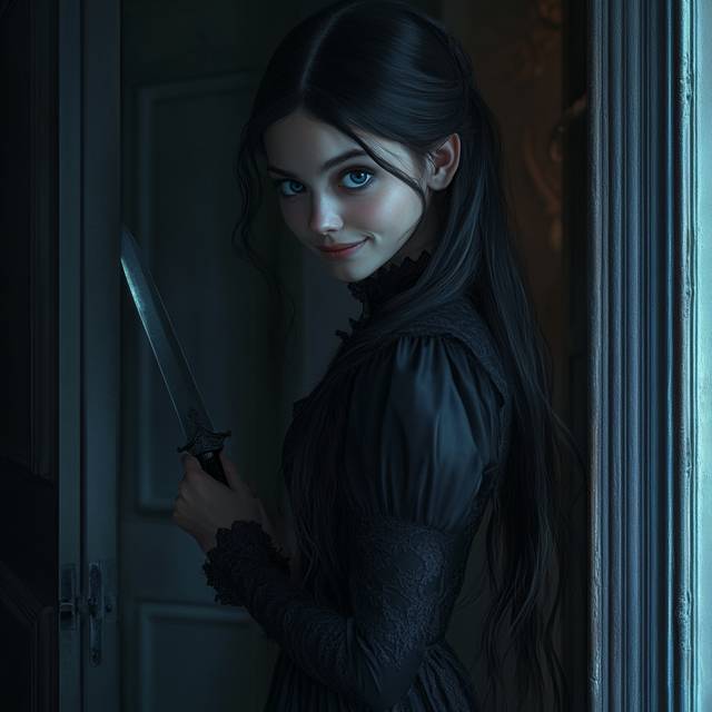 Дверь медленно приоткрылась, явив бледное личико девушки. Тело осталось скрыто за дверью, на губах играла едва заметная улыбка.