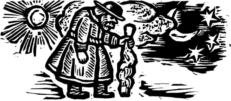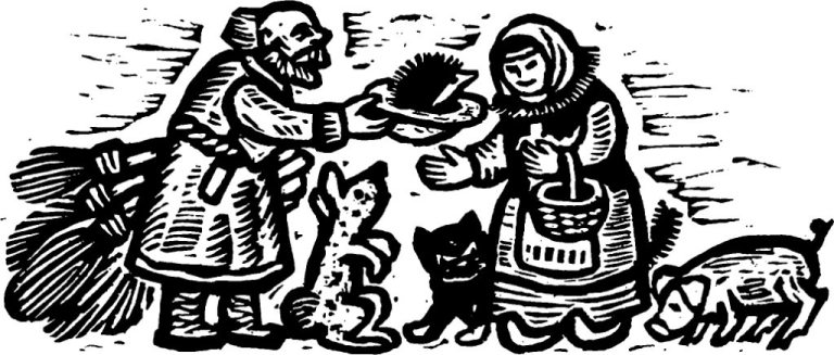Жил когда-то старик-метельщик. Пошёл он однажды в лес за прутьями метёлок навязать. Вдруг откуда ни возьмись — ёжик, так и вертится под ногами. Присел старик поесть. А ёжик всё крутится возле него — то хлебную крошку подберёт, то каплю молока с сапога слизнёт. Понравился метельщику зверёк, посадил он его в шапку и унёс домой. Наутро проснулся старик, поглядели они с женой и видят: все тарелки перемыты, по местам расставлены,