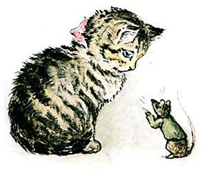 А это – Мышонок. Он выглядывает из-за буфета и дразнит мисс Кроху. Он совсем не боится котенка.
