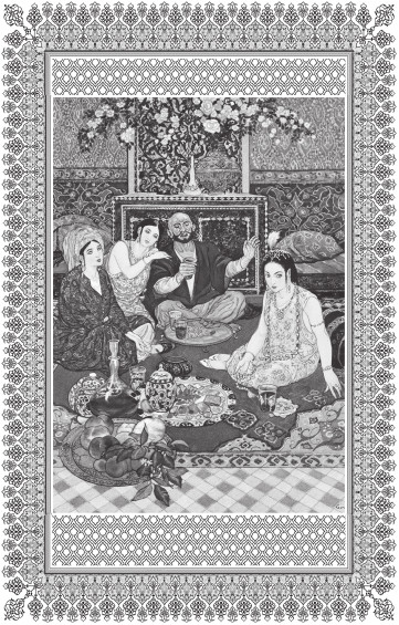 Вино ты бери из рук газели изнеженной,Что нежностью свойств тебе и винам подобна».Потом носильщик поцеловал женщинам руки и выпил, и опьянел, и закачался, и сказал: