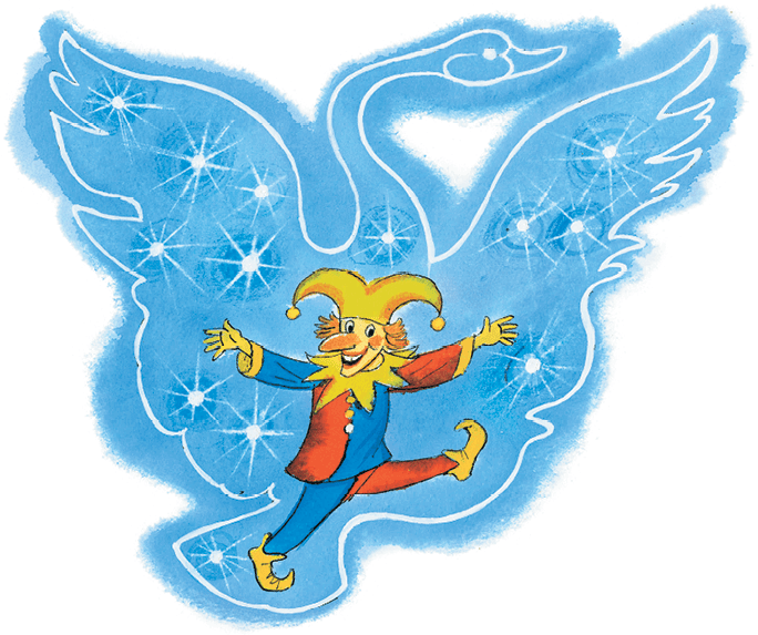 – Вот лебедь, – отвечала девочка, ещё крепче прижимая к себе паяца. – Вот он. Совсем жемчужный. Видишь? Из музыки.