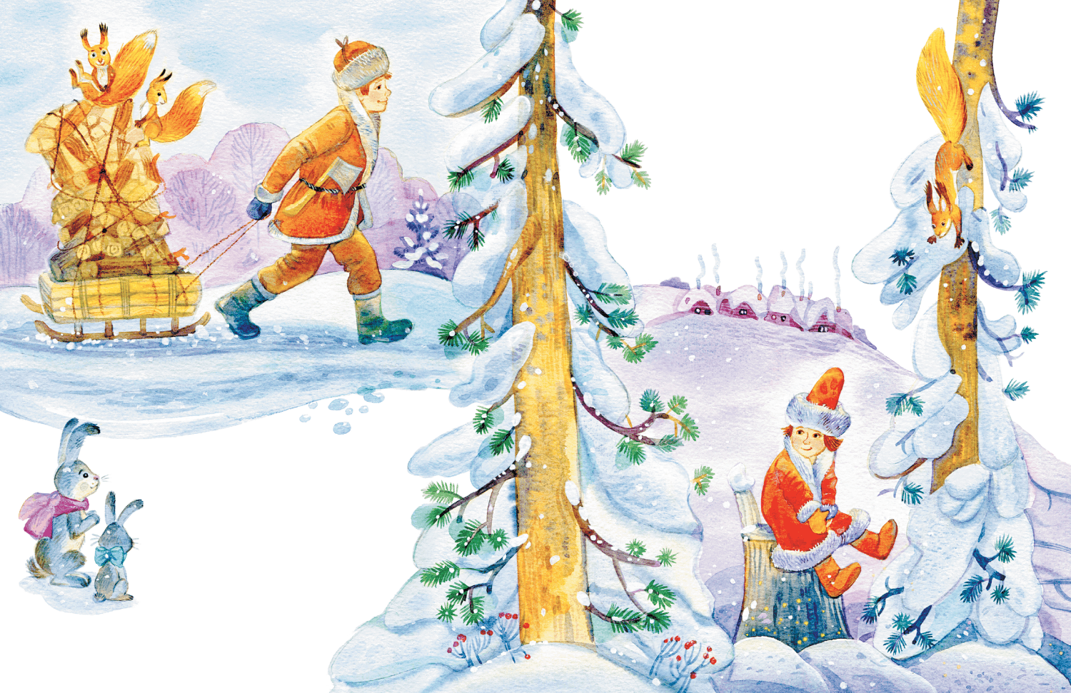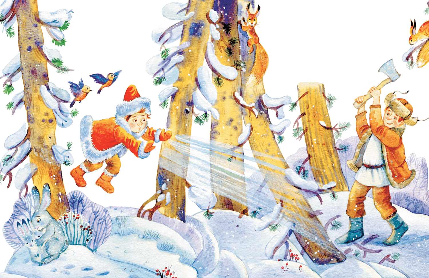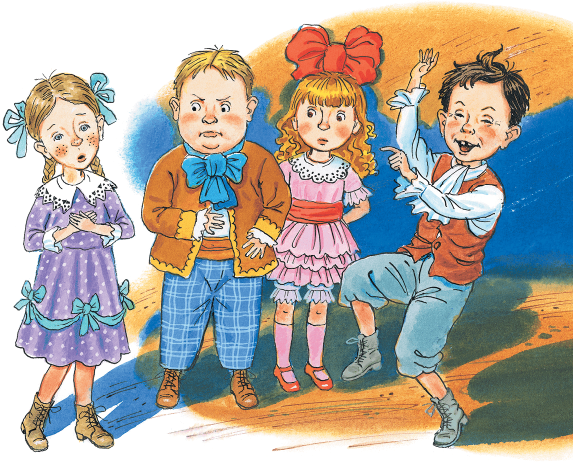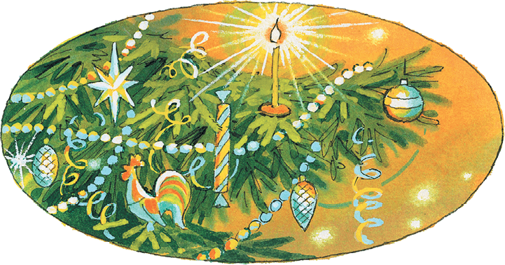 Её бледные глаза смотрели так честно и строго, что мальчик с хохолком растерялся и, чтобы выйти молодцом из неприятной истории, заскакал козлом вокруг ёлки и заорал во всё горло: