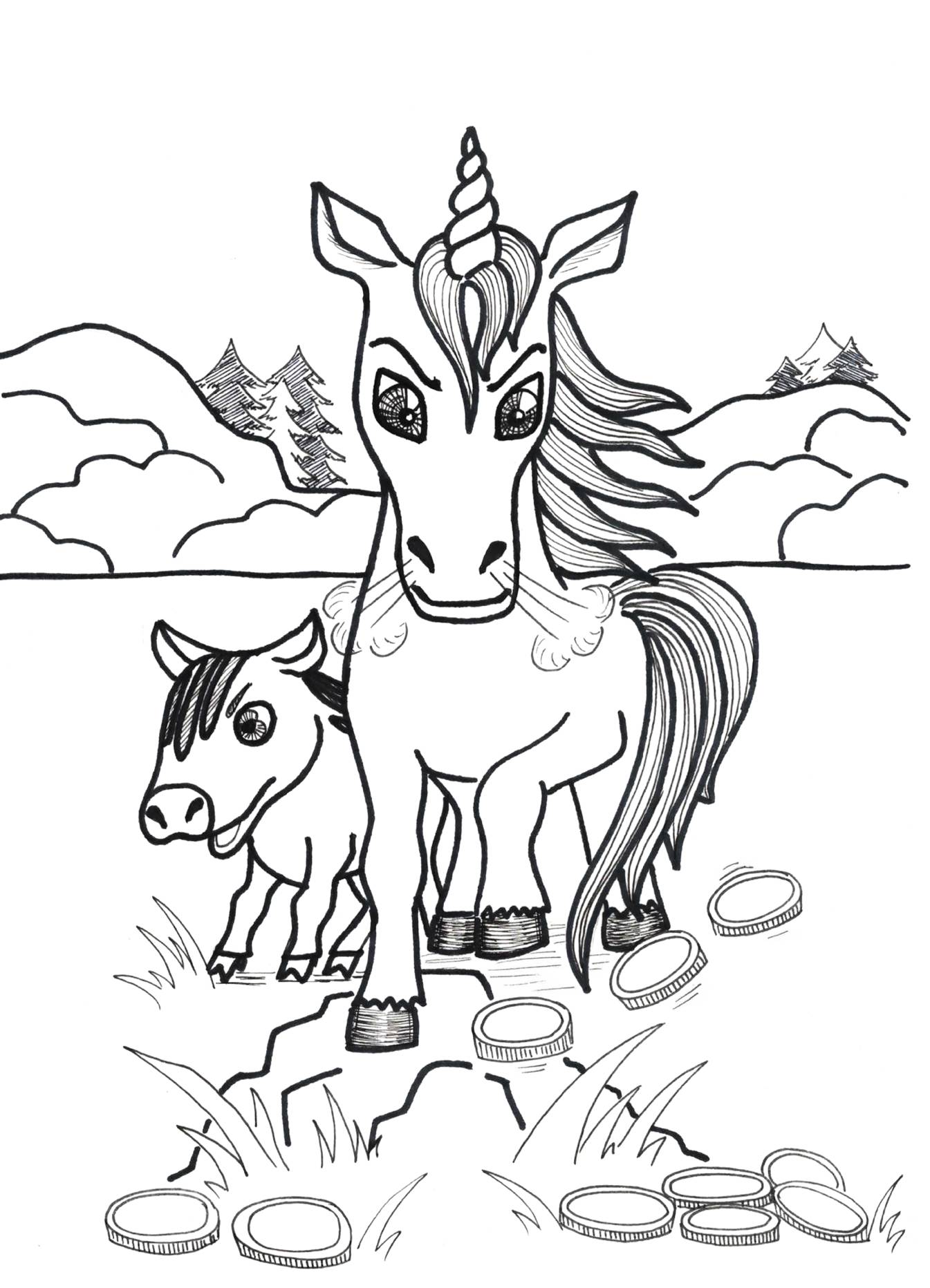 Яркий Цветок бросился наперерез врагу. Выстрелы стихли. Охотники смотрели заворожено на несущегося разъяренного разноцветного единорога, из-под копыт которого сыпались золотые монеты. Один за другим, побросав свои ружья, кинулись они собирать деньги, забыв, что пришли сюда за чужими жизнями.