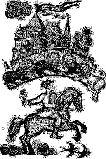 — Мама, пускай меня Иван нигде не ищет, a пycкай, — говорит, — найдёт Воловью гору-Шелковую траву… — да и полетела.