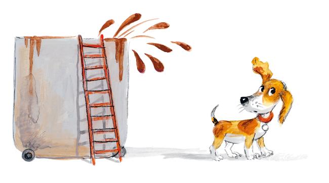 На носу тоже шоколадная башенка выросла. Щенок захотел попробовать.