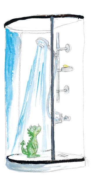Поставили Дракончика под душ и отмыли. Снова стал он не шоколадным, а настоящим. И все малыши получили по большой шоколадной конфете. Которая умещается в большой коробке. Одна.
