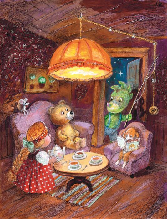 Дверь растворилась, и в дом просунулась длинная удочка, а за ней появился Дракончик.