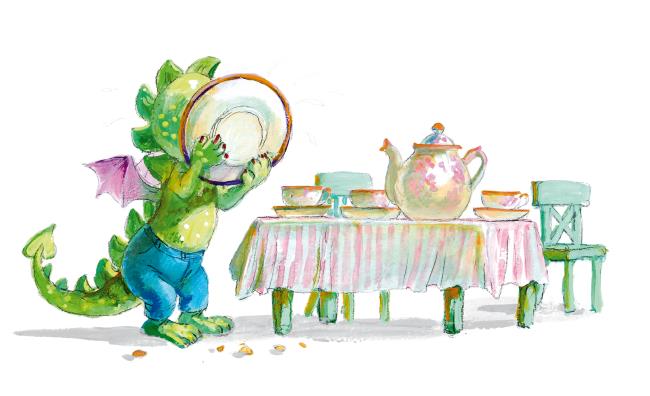 Смотрят на стол, а угощаться-то нечем. Всё Дракончик слопал. Ничего не осталось.