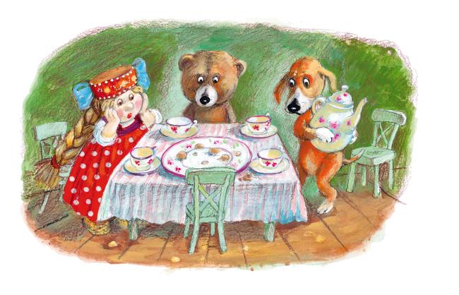 – Прошу вас, угощайтесь, – предложил именинник гостям – кукле Насте и рыжему Щенку.