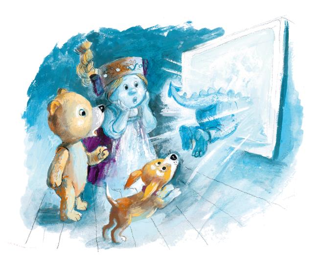 – Хочу в сладкую страну! – закричал Дракончик. И прыгнул прямо в экран, в телевизор. А за ним и остальные: именинник Мишутка, кукла Настя и рыжий Щенок.