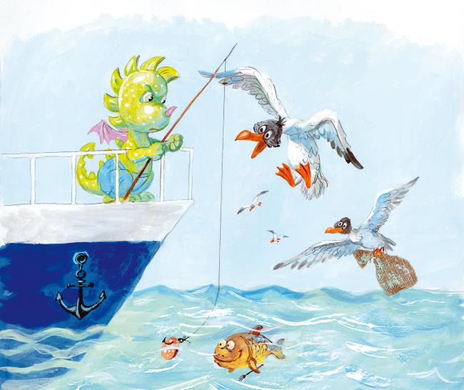Вдруг как рванёт леску! Полетел Дракончик вместе с удочкой за борт. И сразу пошёл ко дну.