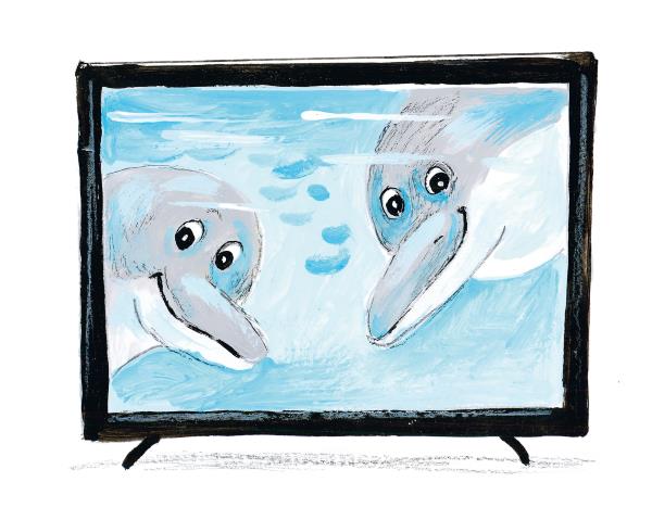 Долго ещё плыли Дельфины за кораблём. Даже когда кукла Настя, Щенок и Медвежонок, а следом Дракончик попрыгали в комнату, на экране ещё ходили колесом и улыбались резвые Дельфины. Хорошо, что на экране телевизора было толстое стекло, а то бы морские волны совсем забрызгали пол.