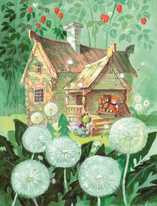 Однажды в жаркий летний день кукла Настя, Щенок и Медвежонок сидели на крылечке кукольного дома. Они сидели на скамейке в тени, потому что солнце уж очень припекало.