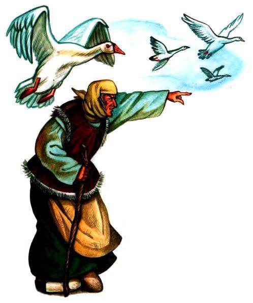 Испугались гуси, полетели назад за Ивашечкой и Малашечкой. Летят да жалобно друг с дружкой, передний с задним, перекликаются: