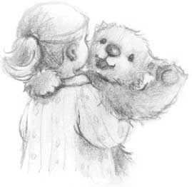 Медвежонок выглянул из-за плеча девочки и помахал друзьям лапой, как бы говоря «спасибо», а потом Сара понесла его домой и закрыла за собой дверь.