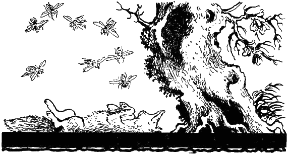 Три мышки, подобравшиеся к пчелиному гнезду, так и остались лежать под деревом, насмерть зажаленные пчёлами. Сам медведь махнул лапой на дупло с его вкусными запасами и маленьким свирепым народцем, после того как ему пришлось с утра до вечера обмакивать распухший нос в холодную воду ручья.