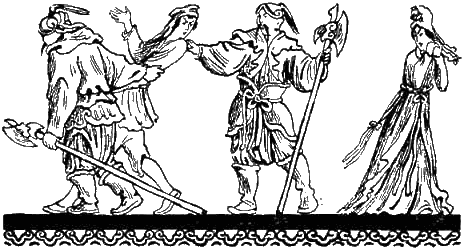 Купец сел у края поля, а младший брат взялся за дело. Вынет из корзины кусок мяса и швырнёт его вперёд. Собака за мясом бежит, младший брат только на соху нажимает, чтобы борозда поглубже и поровнее шла. Проглотит собака мясо, а впереди уже другой кусок лежит. Так от куска к куску и бежит собака.