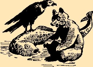 — Ой-ой! Жжет мне спину! — кричит Мишко. Волк говорит:
