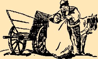 Приказал поп на следующий день Ивану залезть в мешок. Залез Иван в мешок, а поп быстро завязал его, бросил на повозку и везет к речке. Едет и попадья. Проезжают мимо корчмы, попадья и говорит попу: