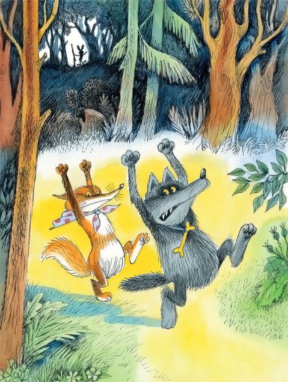 Поднял Старый Заяц ружьё, выстрелил в воздух. Вздрогнула Лиса, присела. А Волк вытянулся — лапы по швам.