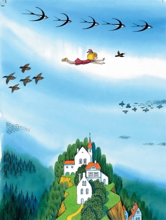 Вскоре Дрозд и девочка были окружены сотнями птиц, летевшими в том же направлении.