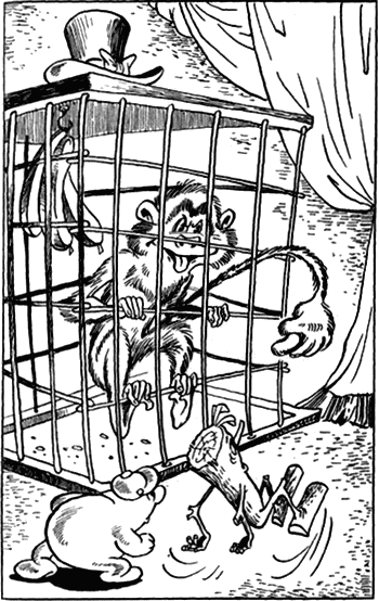 Но не тут-то было. Петя пришел в себя и начал вырываться. Кто знает, чем бы все это кончилось, если бы в эту минуту не появилась обезьяна, та самая, которую выпустил из клетки Нетак. Задрав хвост, она мчалась по коридору, а за ней бежал сам директор цирка и на ходу отдавал распоряжения: