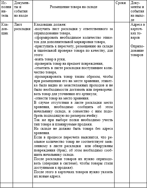 • распечатать лист раскладки и передать кладовщику для размещения товара на складе (лист раскладки должен содержать: наименование, артикул, кол-во товара по сопроводительным документам, адрес хранения).