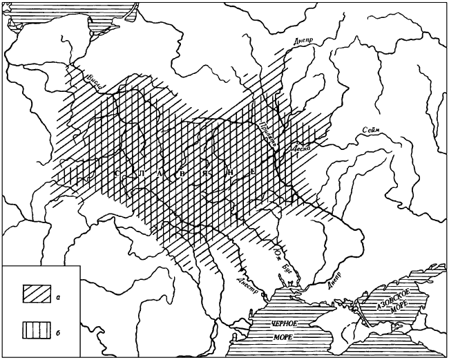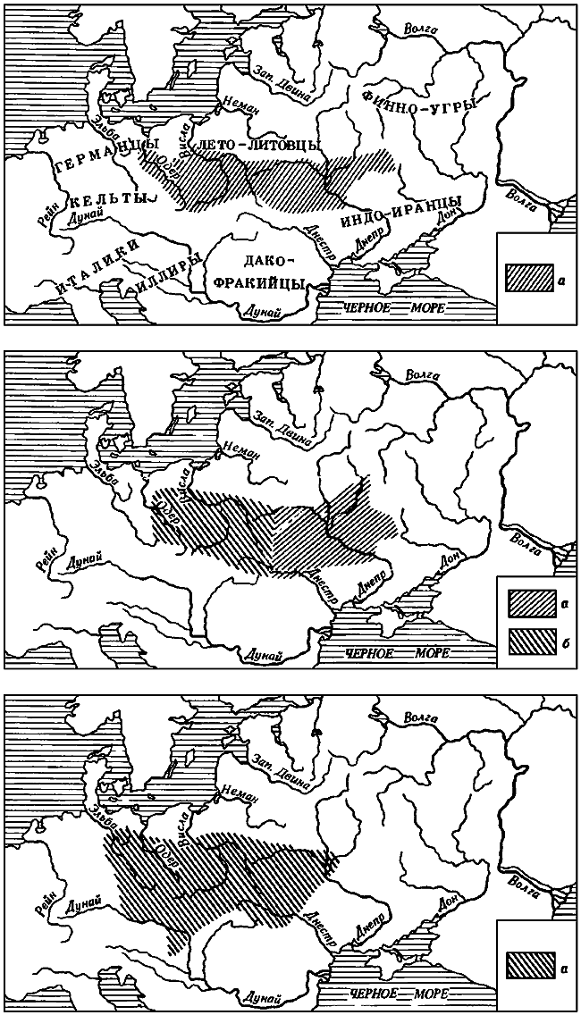 2 — славяне на рубеже нашей эры (а — восточная часть территории; б — западная часть);