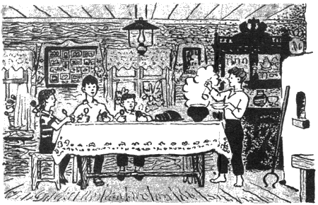 Валька отрезал каждому по ломтю ржаного хлеба от большого круглого каравая.
