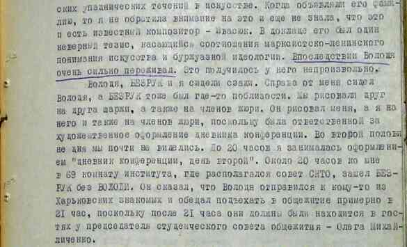 Читаем показания Виктории далее, до конца протокола ещё далеко: «Мы договорились, что летом встретимся в Крыму. Я ему сказала, что летом буду работать недалеко от Севастополя в студенческом строительном отряде, а он сказал, что будет отдыхать в Судаке, где он ежегодно проводит не менее двух недель, занимаясь подводным плаванием. Когда он узнал, что я буду в Крыму, он обрадовался и сказал, что мы обязательно должны встретиться, что к нему я приеду вместе с 16-летним братом, который тоже будет в стройотряде. Он ответил, что это будет даже ещё лучше. Володя предлагал до лета приехать мне во Львов, но я сказала, что очевидно во Львов я не приеду, тем более, что у меня на это нет никаких оснований. Тогда он спросил, часто ли я бываю в Киеве. Я сказала, что часто и он предложил мне сразу, как я буду туда собираться ехать, позвонить к нему домой и он сразу приедет в Киев, что ему это не составит труда. [выделено мною – А.Р.]»