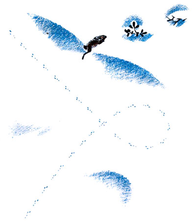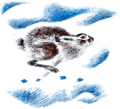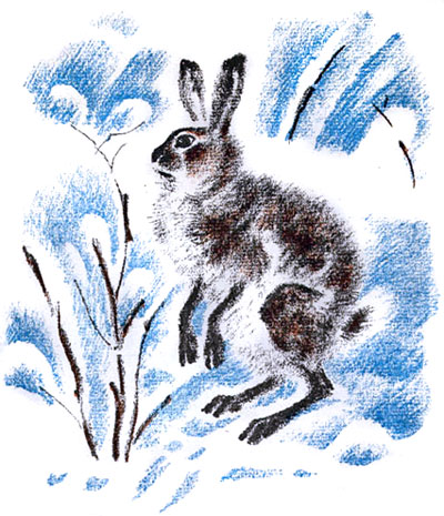 Лиса хитра, и заяц не прост: умел свой след запутать. Скакал, скакал по полю, завернул, выкружил большую петлю, свой же след пересек — и в сторону.