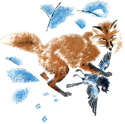 Глядь, заячий след на снегу! Лиса нос к земле.