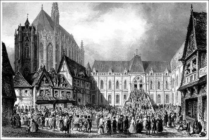 Между тем день 6 января 1482 года отнюдь не являлся датой, о которой могла бы хранить память история. Ничего примечательного не было в событии, которое с самого утра привело в такое движение и колокола и горожан Парижа. Это не был ни штурм пикардийцев или бургундцев, ни процессия с мощами, ни бунт школяров, ни въезд «нашего грозного властелина короля», ни даже достойная внимания казнь воров и воровок на виселице по приговору парижской юстиции. Это не было также столь частое в XV веке прибытие какого-либо пестро разодетого и разукрашенного плюмажами иноземного посольства. Не прошло и двух дней, как последнее из них — это были фландрские послы, уполномоченные заключить брак между дофином и Маргаритой Фландрской, — вступило в Париж, к великой досаде кардинала Бурбонского, который, в угоду королю, должен был скрепя сердце принимать неотесанную толпу фламандских бургомистров и угощать их в своем Бурбонском дворце представлением «прекрасной моралитэ, шутливой сатиры и фарса», пока проливной дождь заливал его роскошные ковры, разостланные у входа во дворец.