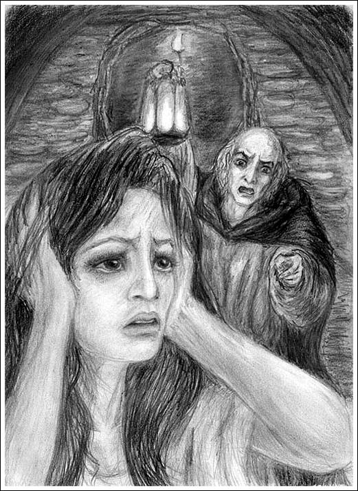 Она упала ничком на землю, и ничего больше не было слышно в темнице, кроме вздохов капель воды, зыбивших лужу во мраке.