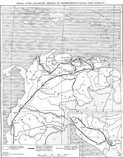 Во время восьмимесячного пребывания Боливара в Кингстоне оставленные им в Венесуэле генералы, а также генерал Арисменди на острове Маргариты, стойко сопротивлялись испанскому оружию. Но когда Рибас, которому Боливар был обязан своей славой, был расстрелян испанцами после взятия Матурина, вместо него на сцене появился другой человек, еще больших дарований, который, ввиду невозможности для него, как иностранца, играть самостоятельную роль в южноамериканской революции, в конце концов решил действовать под начальством Боливара. Это был Луи Брион. Для того чтобы оказать помощь революционерам, он отплыл из Лондона в Картахену на 24-х пушечном корвете, снаряженном большей частью на его собственные средства и везшем 14000 комплектов оружия и большое количество военных запасов. Так как он прибыл слишком поздно и уже не смог оказаться полезным повстанцам в этом районе, то он отправился отсюда в Кайес на Гаити [237] , куда после сдачи Картахены стекались многие эмигранты-патриоты. Тем временем Боливар тоже отправился из Кингстона в Порт-о-Пренс, где в ответ на его обещание освободить рабов президент Гаити Петион выразил готовность оказать ему всяческую материальную поддержку для новой экспедиции против испанцев в Венесуэле. В Кайесе он встретил Бриона и других эмигрантов и на общем собрании предложил себя в начальники новой экспедиции, на том условии, чтобы в его руках была соединена гражданская и военная власть впредь до созыва общего конгресса. Большинство приняло его условие, и 16 апреля 1816 г. экспедиция отплыла с Боливаром в качестве командующего и Брионом в качестве адмирала. На острове Маргариты Боливару удалось привлечь на свою сторону командующего местными войсками Арисменди, который добился того, что в руках у испанцев на острове оставался единственный пункт — Пампатар, Получив официальное обещание Боливара созвать национальный конгресс в Венесуэле, как только он овладеет страной, Арисменди созвал хунту в соборе города Ла-Вилья-дель-Норте и публично провозгласил Боливара главнокомандующим республик Венесуэлы и Новой Гранады. 31 мая 1816 г. Боливар высадился в Карупано, но не решился помешать Мариньо и Пиару отделиться от него и вести войну против Куманы на свой собственный страх и риск. Ослабленный этим отделением, он, по совету Бриона, отплыл в Окумаре, куда прибыл 3 июля 1816 г. с 13 кораблями, из которых только семь были вооружены. Его армия, насчитывавшая всего 650 человек, с набором негров, освобождение которых он провозгласил, увеличилась приблизительно до 800 человек. В Оку-маре он снова обнародовал прокламацию, в которой обещал «истребить тиранов» и «созвать народ для того, чтобы он назначил своих депутатов в конгресс». При своем продвижении в направлении к Валенсии он, неподалеку от Окумары, встретил испанского генерала Моралеса во главе отряда, насчитывавшего примерно 200 солдат и 100 ополченцев. Когда стрелки Моралеса рассеяли его авангард, он потерял, по словам одного очевидца,