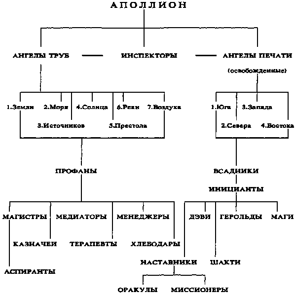 В каждом национальном центре была своя инфраструктура, более или менее совпадающая с общей схемой. В зависимости от количества адептов, число всадников могло варьироваться в широких пределах. В России и Соединенных Штатах оно приближалось к десяти — в одном Нью-Йорке было, как минимум, трое, — на такие страны, как Австрия или Чехия, приходилось в лучшем случае по одному всаднику. Основная их функция заключалась в прозелитстве и отборе кандидатов для посвящения.