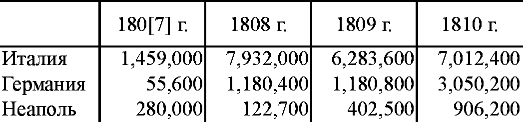 Что же касается Лиона, то здесь в 1812 г. рабочих в этой отрасли производства было 14 072, в Сент-Этьене и Шомоне вместе — 15 453; из новых присоединенных владений это производство распространено во Флоренции (10 тысяч рабочих) и в Крефельде (5346 человек) [23] . Цифра, касающаяся Крефельда, преувеличена. По другим сведениям, в феврале 1812 г. в Кельне, Крефельде и Клеве работало над выделкой шелковых материй 4942 станка (при них 5950 рабочих), и правительство замечало быстрый и непрерывный рост этой индустрии в означенных своих немецких владениях [24] . Вообще же, напоминаю читателю, что статистика 1812–1813 гг. особенно недостоверна и даже часто фантастична.