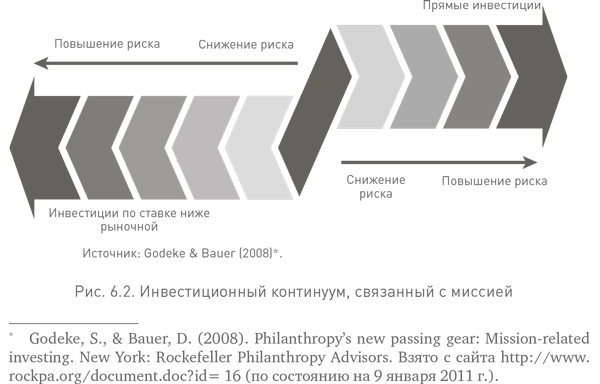 «Предложение» на рынке инвестиций влияния содержит инвестиционные возможности, которые социальные предприниматели предлагают потенциальным инвесторам. Как подчеркивается в работе Эмерсона, Френдлиха и Беренбаха, «нынешний ландшафт капитала для социального предприятия довольно плохо описан». Мало кто обращает внимание на вопросы риска, связанного с капиталом, необходимым социальным предприятиям (как коммерческим, так и некоммерческим). Авторы детально рассматривают инструменты, доступные на рынке некоммерческих капиталов, и проблемы, связанные с их использованием социальными предприятиями. К примеру, социальные предприятия, привлекающие частные инвестиции, подвергают риску свою миссию, поскольку большинство частных инвесторов ставят во главу угла извлечение прибыли. Предоставление капитала для социальных проектов также обременено рядом ограничений – к примеру, оно нацеливается на обычные рыночные нормы отдачи и концентрируется на отраслях, несущих явные социальные преимущества (например, экологические технологии или микрофинансирование). Фонды могут инвестировать в социальные предприятия свои пожертвования, а некоммерческие организации (типа Acumen Fund) – свободные средства через программные инвестиции (PRI). Они ставят во главу угла социальные цели и лишь затем ожидают финансовую отдачу. Когда дело касается долгов – то есть денег, занятых на определенное количество лет под заранее известный процент, – социальным предпринимателям доступны различные виды финансирования. Традиционные банковские учреждения обеспечивают 1) кредиты на развитие бизнеса (чаще предоставляемые коммерческим социальным предприятиям) и 2) займы, относящиеся к категории CRA (Community Reinvestment Act) [47] (доступ к таким займам с минимальной или даже нулевой процентной ставкой обычно получают некоммерческие социальные предприятия). Вливание капитала (для некоммерческих структур) принимает форму субординированных долгосрочных кредитов, а инвесторы в большей степени сфокусированы на создании социальной, а не финансовой ценности. И, наконец, гранты от правительств, фондов и корпораций имеют ценное преимущество – их не нужно возвращать.