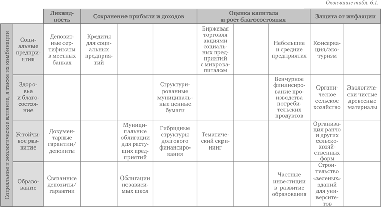 • оптимизации экологического и социального влияния и жесткого применения инструментов управления инвестициями;