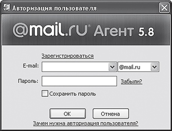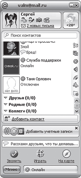 После того как вы авторизовались (ввели электронный адрес и пароль), появится окно программы «Mail.ru Агент» (рис. 3.19).