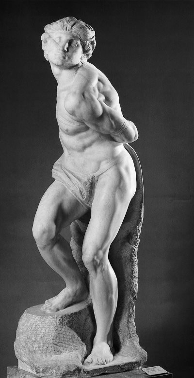 Микеланджело Буонарроти. Восставший раб. Скульптура, задуманная для ансамбля мавзолея папы Юлия II. 1513. Париж, Лувр