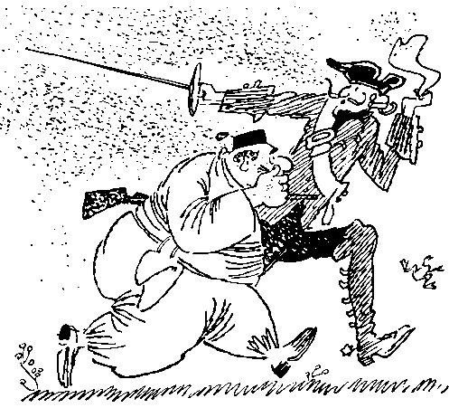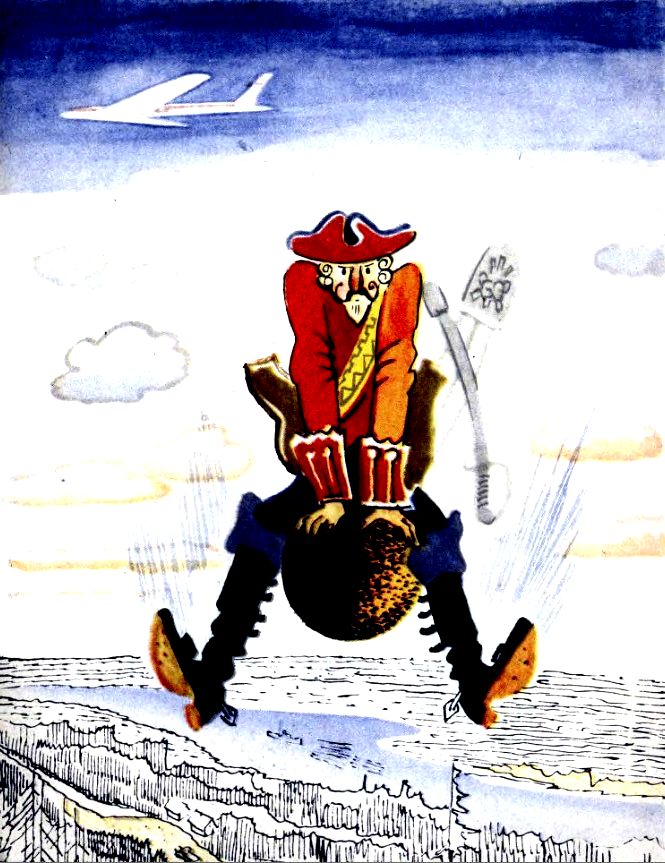 — А я это установил без всякого труда! Честное слово Мюнхаузена! — перебил его барон, горделиво выпятив впалую грудь и положив руку на эфес шпаги. — Обычная рассеянность нашего друга Гулливера приводит иногда к печальным результатам. Он даже не заметил, что я тоже находился в том же научно-исследовательском институте во время разговора о завещании… Только вы стояли на книжной полке, а я лежал в портфеле самого Синельникова. Вы умчались в библиотеку, а я никак не мог выбраться из закрытого портфеля, тем более что его заперли в несгораемый шкаф. Положение казалось совершенно безвыходным. Но мне, как всегда, чертовски повезло. Неожиданно нагрянула бухгалтерская ревизия. И сердитый контролёр, вскрыв портфель, дал взбучку Синельникову: «Как можно среди денежных документов держать книги?» — и с этими словами он выбросил меня на письменный стол. Я понимаю, что вы уже давно в пути. Как только ревизоры отправились в дирекцию, я оседлал своё любимое ядро. И вы имеете удовольствие видеть на заседании клуба барона Мюнхаузена, наполненного целым ворохом самых правдивых историй!
