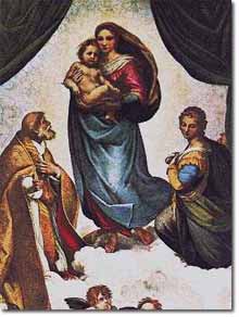 Замысел, исполнение и восприятие картины «Сикстинская мадонна» (1513-1514 гг.) исключительны, и по этому поводу наговорено столько, что возникает желание заново взглянуть на создание художника, который творил свободно, непринужденно, в отличие от Леонардо и Микеланджело, его гениальных современников, отнюдь не думая о соперничестве. Он писал, можно сказать, как Бог на душу положит, спустя рукава, охотно отзываясь на все впечатления земного бытия.