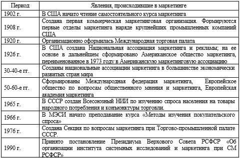 Таблица 1.1 – История маркетинга за рубежом и в России.