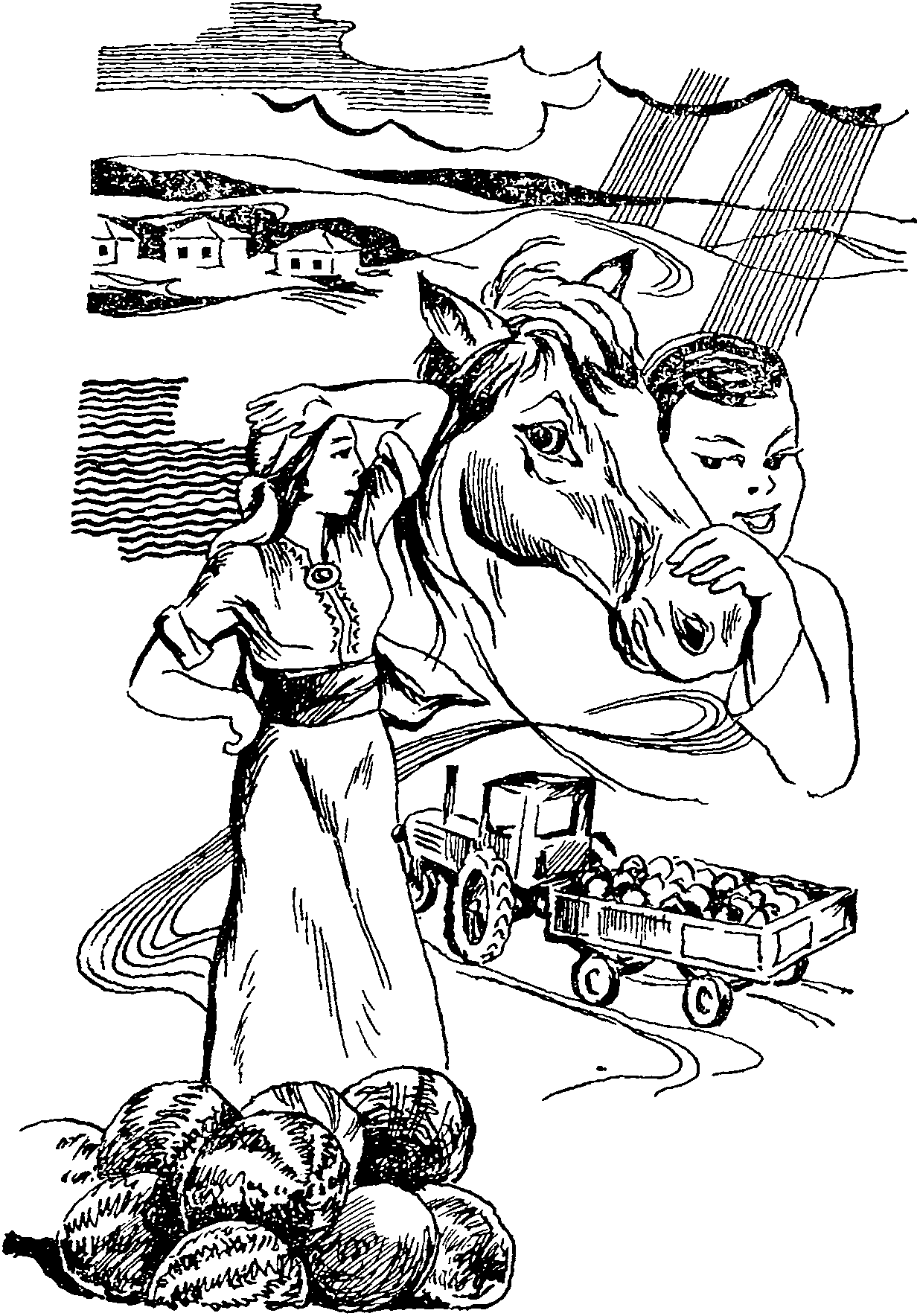 Прицепленная к трактору Гульшен тележка была доверху нагружена огромными полосатыми арбузами. Стоя внизу, я ловил их и складывал на землю.