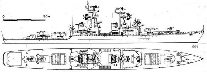 ГРОЗНЫЙ (заводской № 780). 23.2.1960 г. заложен на заводе имени А.А.Жданова (Северная верфь) в Ленинграде и 1 7.9.1960 г. зачислен в списки кораблей ВМФ, спущен 26.3.1961 г., вступил в строй 30.1 2.1962 г. и вошел в состав СФ. 5.1 0.1 966 г. перечислен в состав КЧФ и 6.1.1984 г.- в состав ДКБФ. 12 - 15.8.1 967 г. нанес визит в Варну и Бургас (Болгария), 29.1 - 4.2.1 968 г.- в Ко- тор и Зеленику (Югославия), 20-27.7.1969 г.-в Гавану (Куба), 6 - 8.8.1969 г.- в Фор-де-Франс (Мартиника), 20 - 25.4.1 972 г.- в Касабланку (Марокко), 2 - 7.7.1973 г.- в Марсель (Франция), 20 - 25.11.1974 г.- в Латакию (Сирия), 1 9 - 23.7.1 984 г., 26 - 30.5.1985 г. и 18 - 23.7.1987 г.- в Гдыню (Польша), 5 - 8.10.1984 г., 7 - 11.10.1985 г. и 23 - 28.10.1987 г.- в Росток (ГДР) и 19-24.7.1988 г.- в Щецин (Польша). В период с 1 9.7.1 976 г. по январь 1 984 г. прошел на «Севморзаводе» в Севастополе капитальный ремонт, 1.4.1 989 г. вновь поставлен в Лиепае на капитальный ремонт, но 24.6.1991 г. разоружен и исключен из состава ВМФ в связи с передачей в ОФИ для демонтажа и реализации, 31.1 2.1 992 г. расформирован и в 1 993 г. набазе «Главвторчермета» в Лиепае разделан на металл.